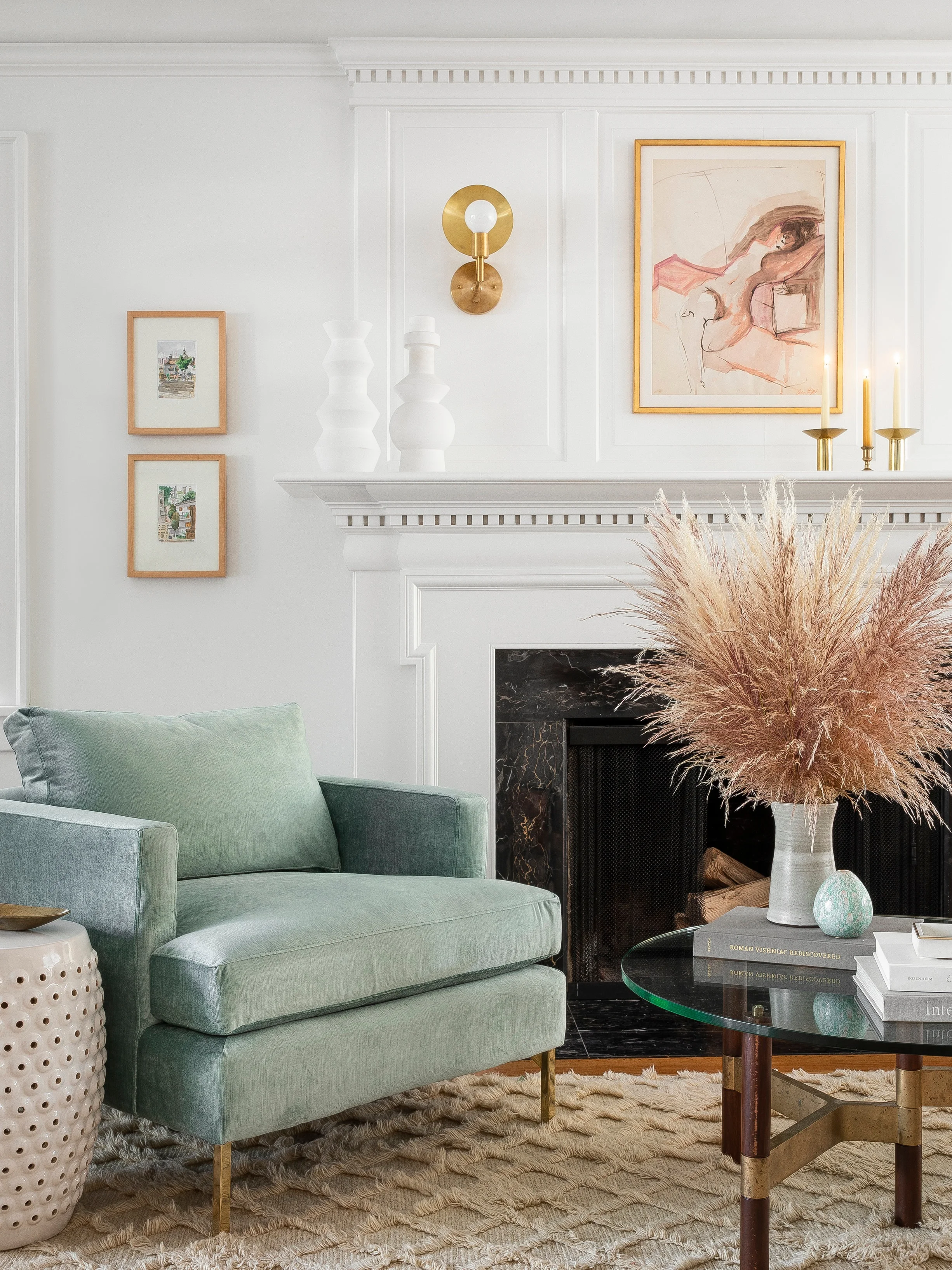 It’s all about balance, common themes, contrasts and practicality. Family and complementing the symmetry of traditional details were common themes throughout the project. Casey wanted to balance and blend the seriousness of colonial homes with relaxed Northwest vibes. She did this by layering in neutral textures, incorporating the client’s modern art collection and remembering that kids live in this home too, so nothing is too precious.